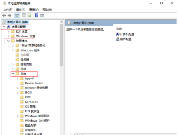 2、这时会打开“本地组策略编辑器”窗口,在窗口左侧边栏依次点击“计算机配置/管理模板/系统”菜单项。