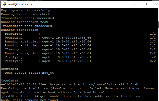 机器故障:宝塔面板安装失败:wget: unable to resolve host address ‘download.bt.cn’