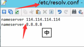 6.输入vi /etc/resolv.conf 按i编辑,nameserver